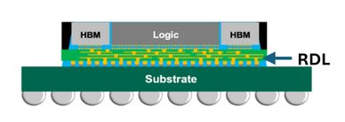 In the CoWoS-R, the interposer acts as a redistribution layer (RDL) that interconnects multi-dies together and the substrate layer.