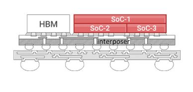 Example of SoIC that supports CoWoS packaging where a 3D homogeneous stack of HBM is integrated with a 3D heterogeneous stack of SoC that are interconnected on an interposer RDL layer.
